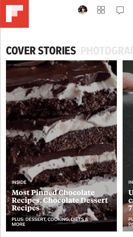 Swipe past your Cover Stories to reveal the Passion Picker. Scroll down to browse options or start typing in the search bar. Once you select a passion, it will populate and you can start flipping right away.